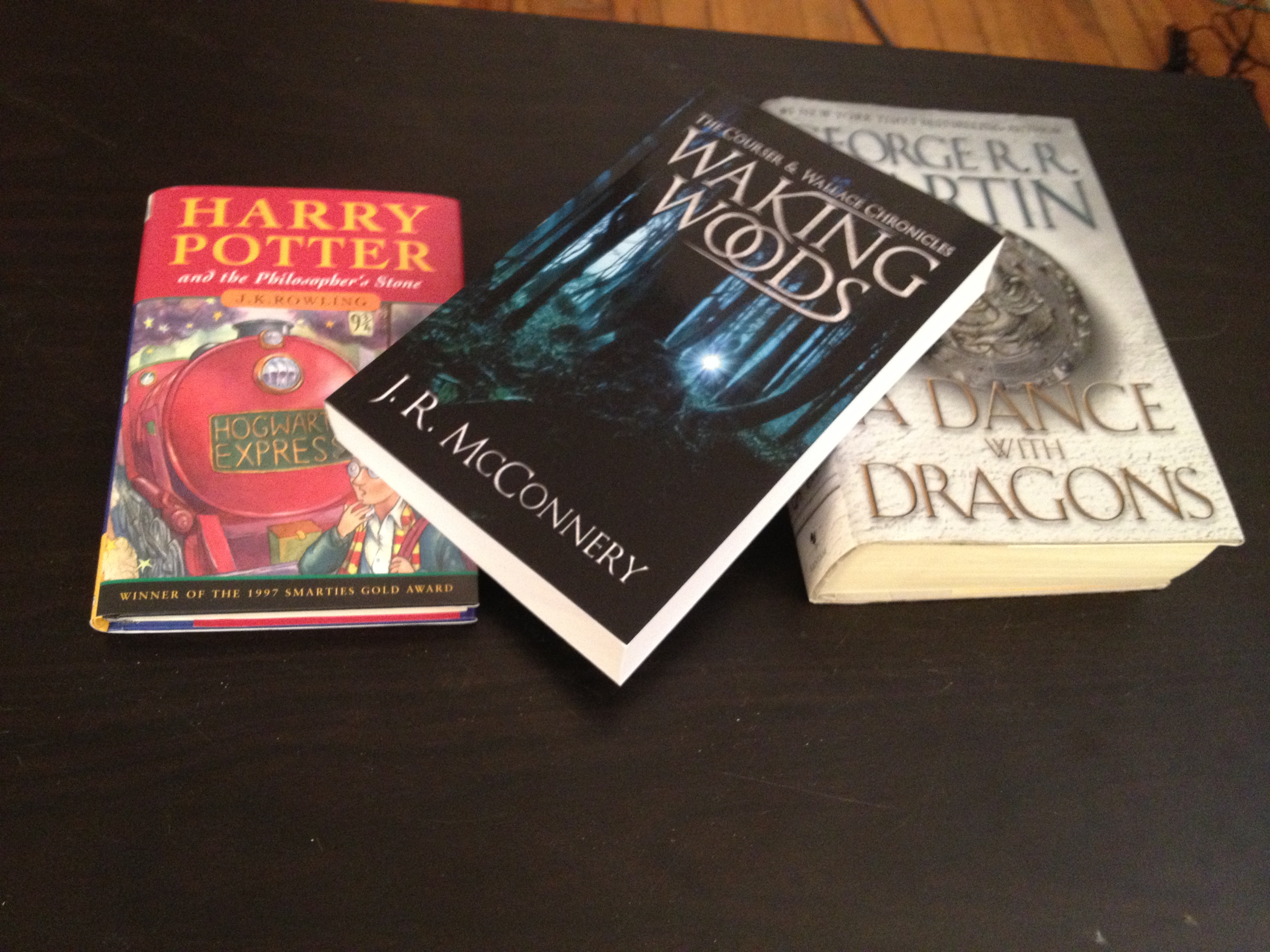 Waking Woods, hanging out with the book that started me reading (Thanks, Grandma) and one of the books that keeps me coming back (Thanks… Dave’s dad, I think). Feels kind of surreal for her/him/it to stand on the shoulders of such giants. Truly a rewarding feeling!